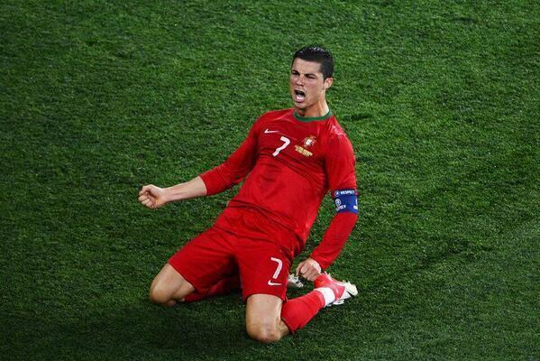 Cristiano Ronaldo celebrates scoring v Sweden with epic knee slide